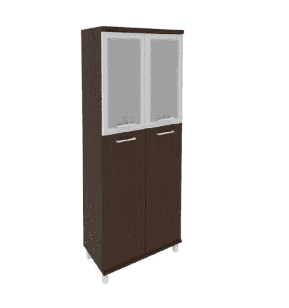 Шкаф высокий широкий (2 средние двери ЛДСП, 2 низкие двери стекло в раме), венге цаво