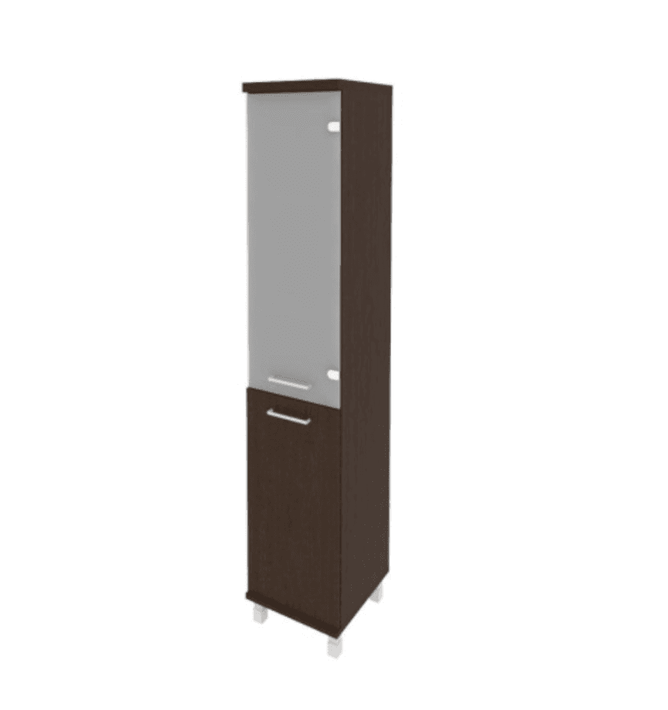 Шкаф высокий узкий левый/правый (1 низкая дверь ЛДСП, 1 средняя дверь стекло), венге цаво
