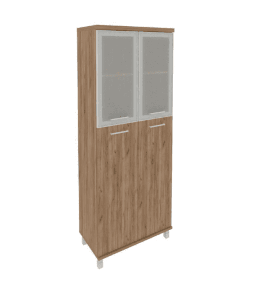 Шкаф высокий широкий (2 средние двери ЛДСП, 2 низкие двери стекло в раме), дуб табак