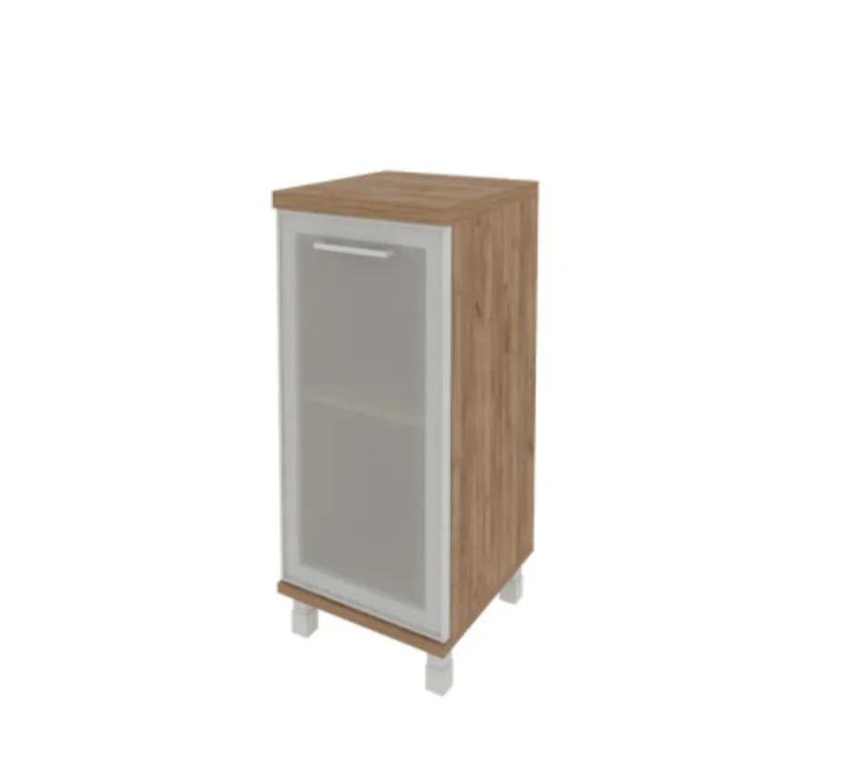 Шкаф низкий узкий левый/правый (1 низкая дверь стекло в раме) дуб табак