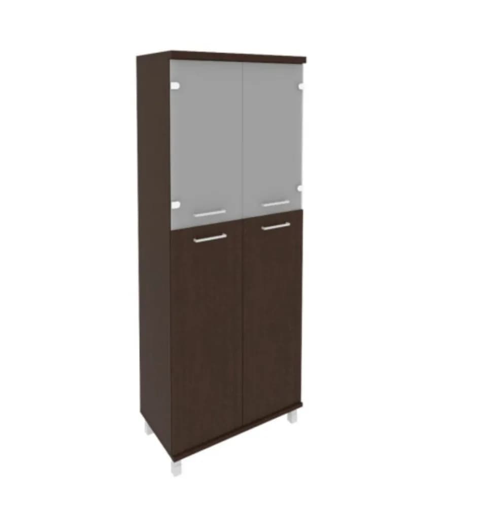 Шкаф высокий широкий (2 средние двери ЛДСП, 2 низкие двери стекло) венге цаво
