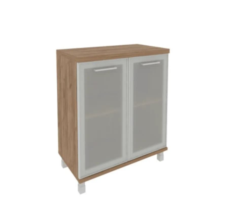 Шкаф низкий широкий (2 низкие двери стекло в раме) дуб табак