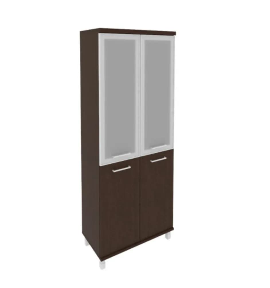 Шкаф высокий широкий (2 низкие двери ЛДСП, 2 средние двери стекло в раме) венге цаво