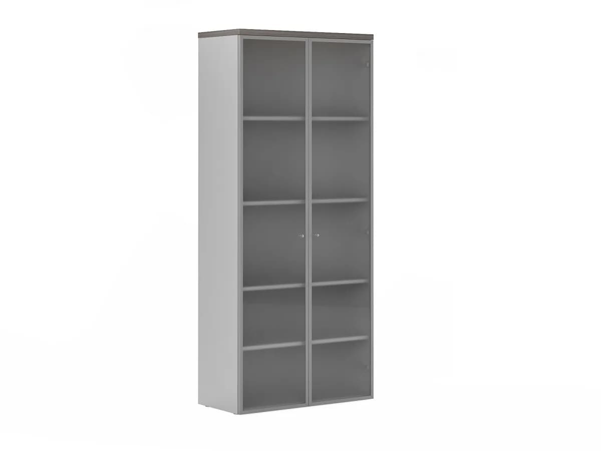 Шкаф высокий со стеклянными дверями в алюминиевой раме лиственница