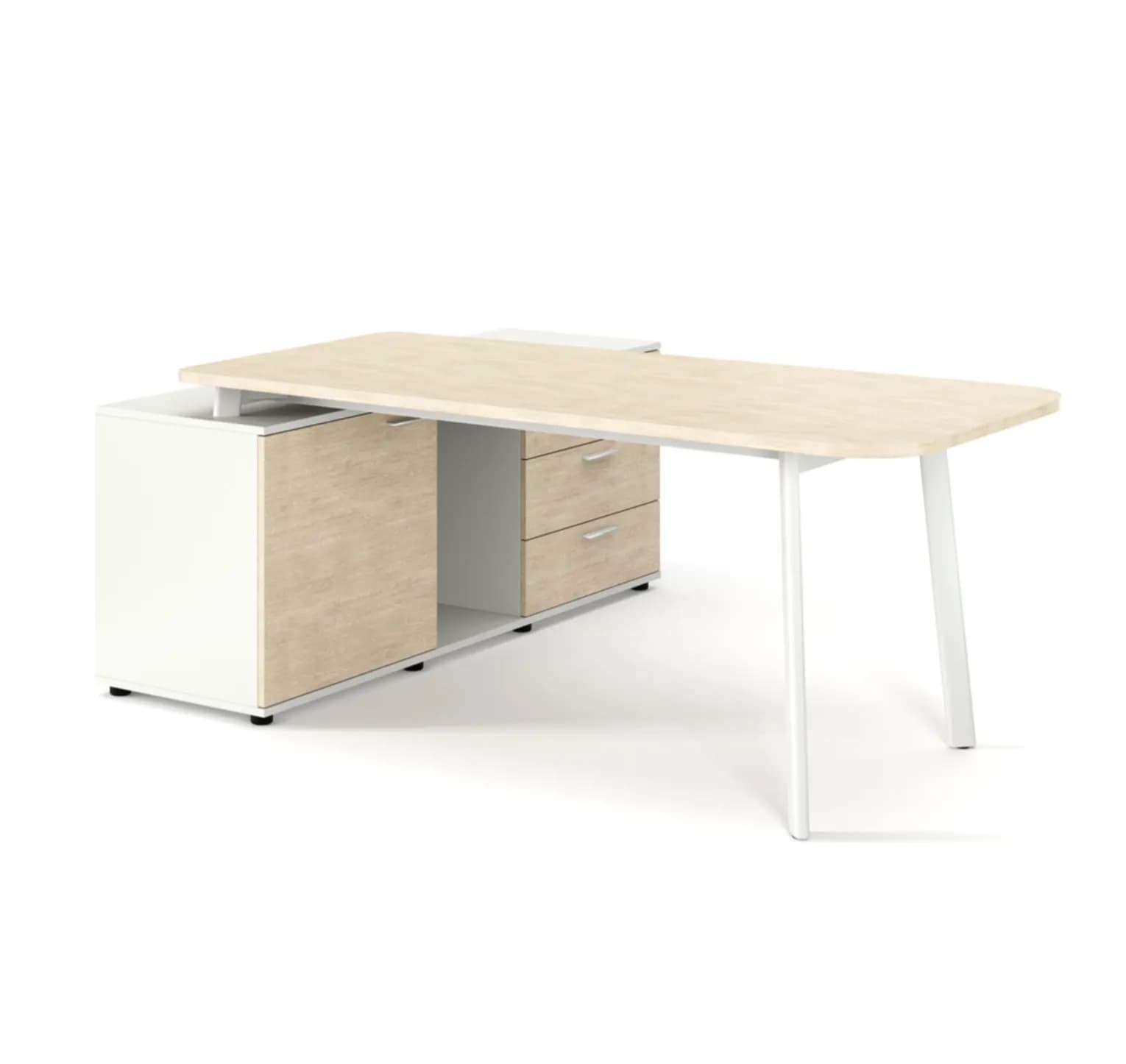 Стол на опорной тумбе (левый) дуб светлый/белый