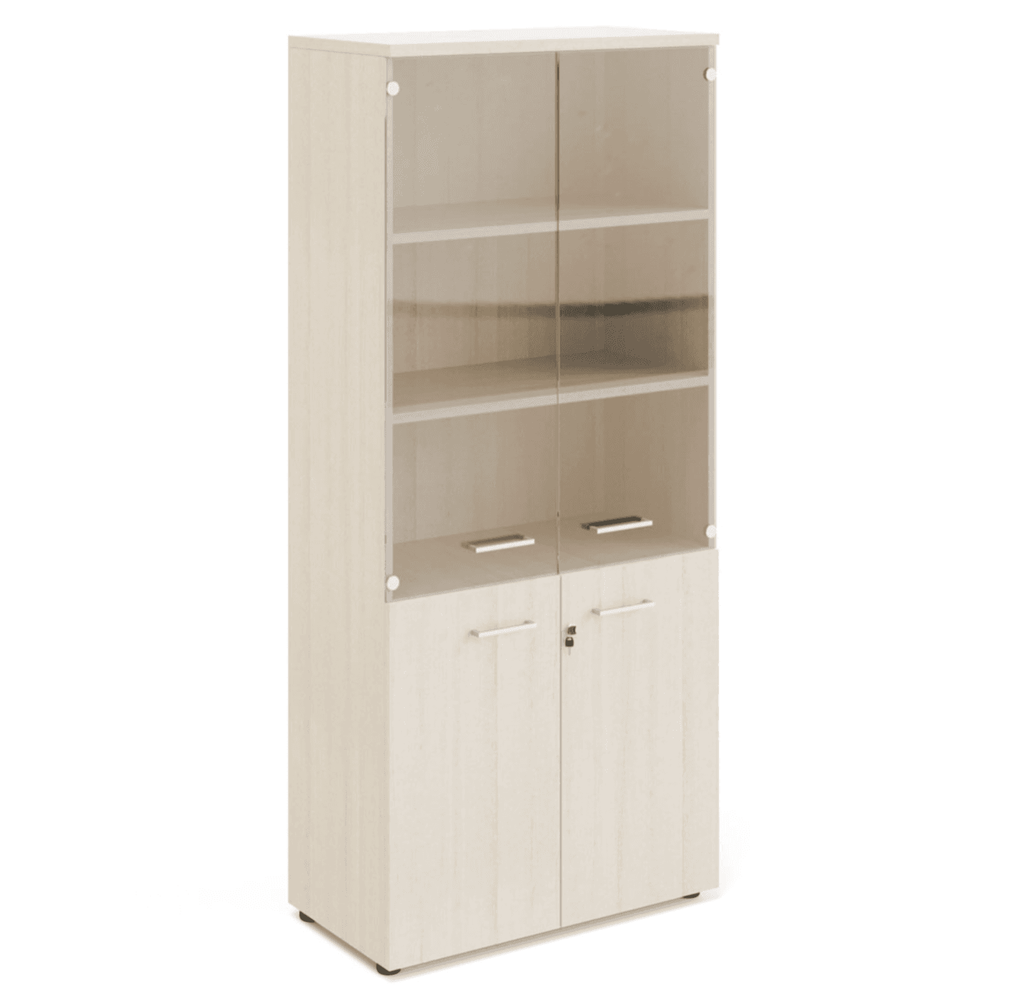 Шкаф высокий комби со стеклом (на заказ), дуб светлый