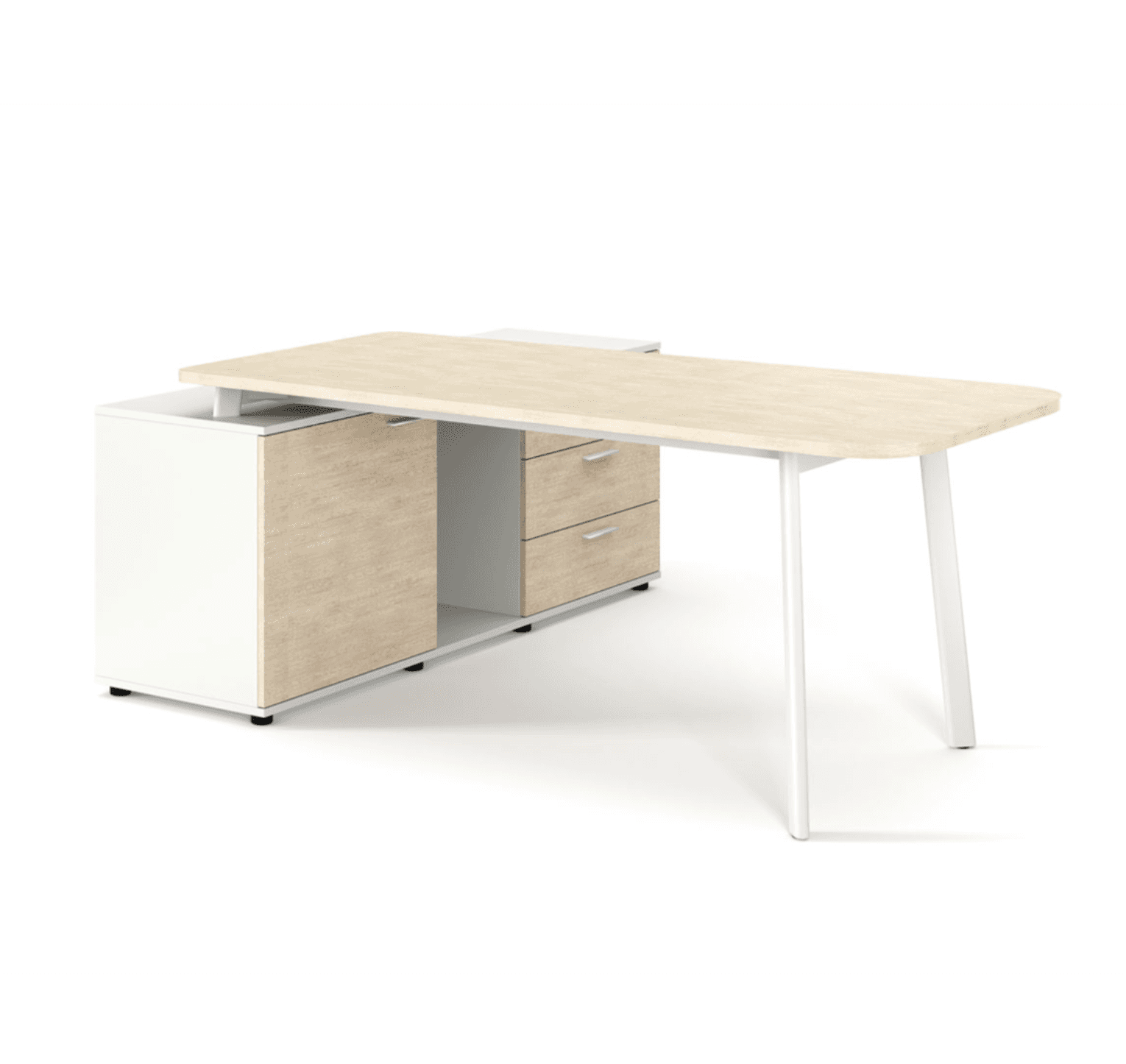 Стол на опорной тумбе (левый), дуб светлый/белый