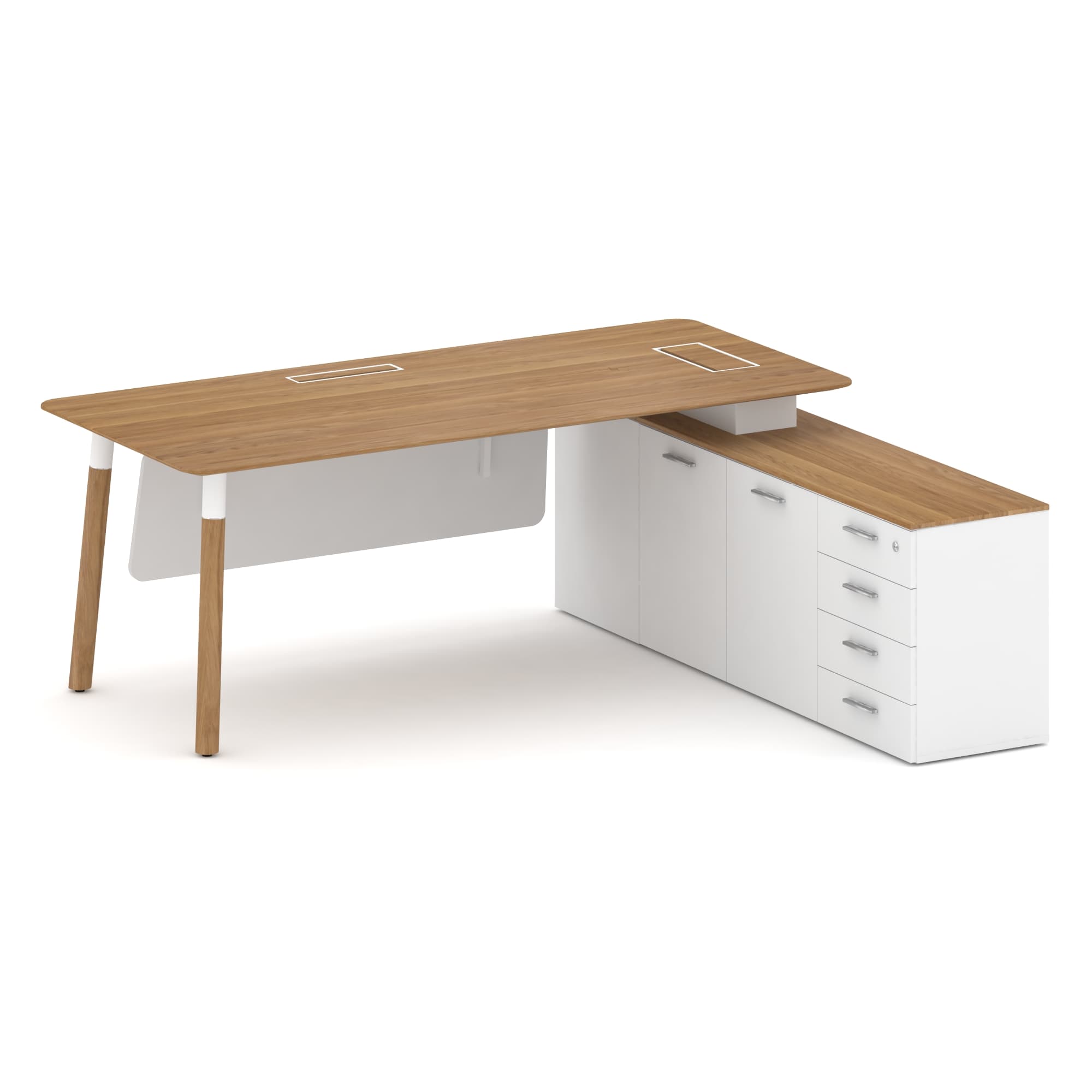 Стол руководителя правый (Металл Белый) 2000, светлый дуб/белый бриллиант