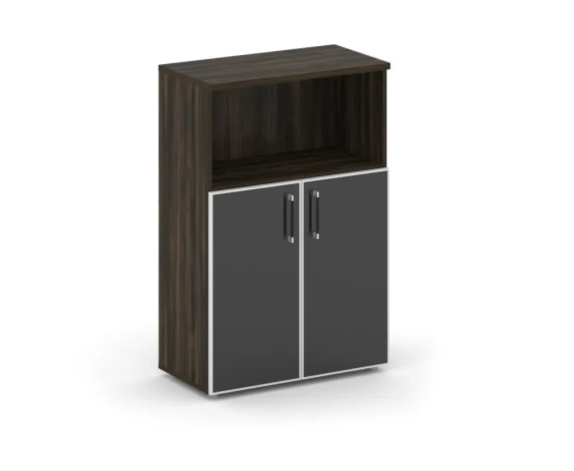 Шкаф средний широкий (2 низких фасада стекло Лакобель в раме) дуб мали