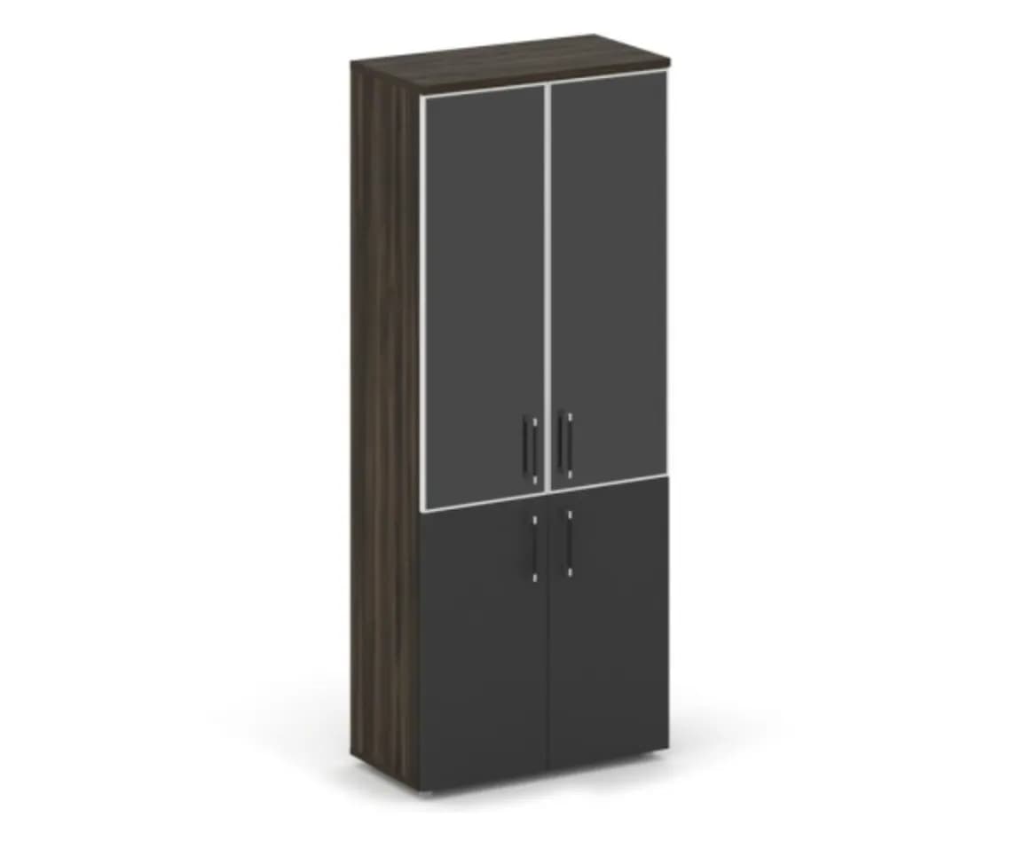 Шкаф высокий широкий (2 низких фасада ЛДСП + 2 фасада стекло Лакобель в раме) дуб мали/антрацит