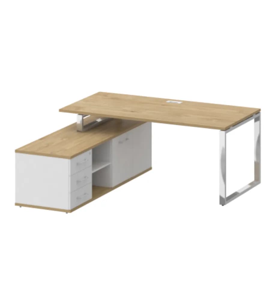 Стол руководителя с опорной греденцией , левый 180 тиквуд светлый/белый бриллиант