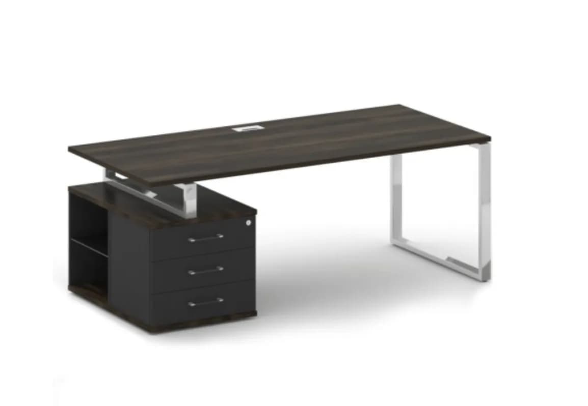 Стол руководителя с опорной тумбой , левый 200 дуб мали/антрацит