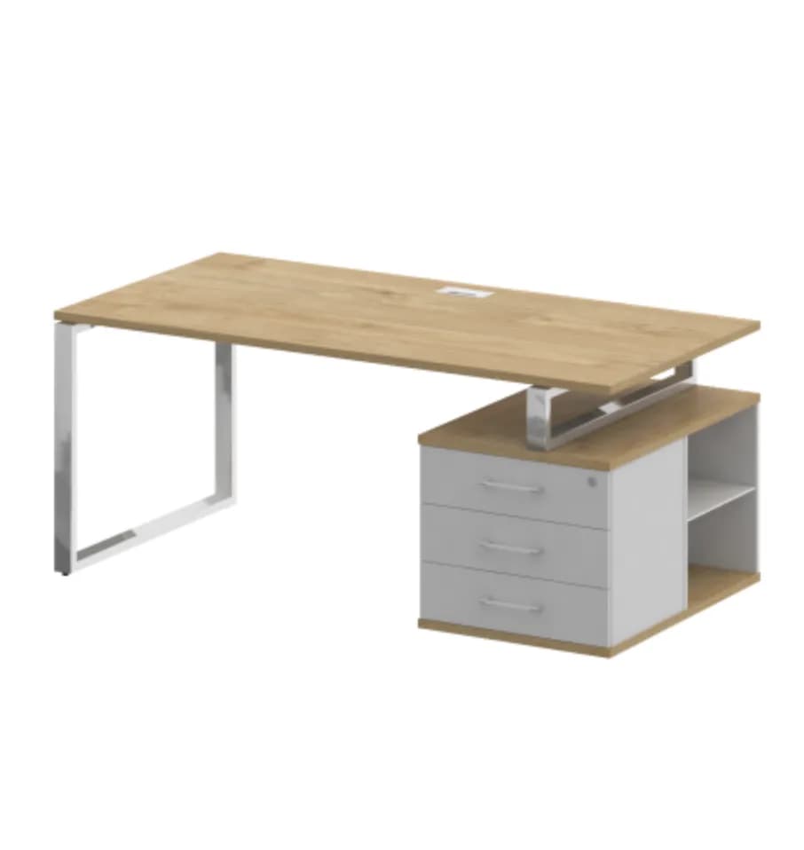 Стол руководителя с опорной тумбой , правый 180 тиквуд светлый/белый бриллиант