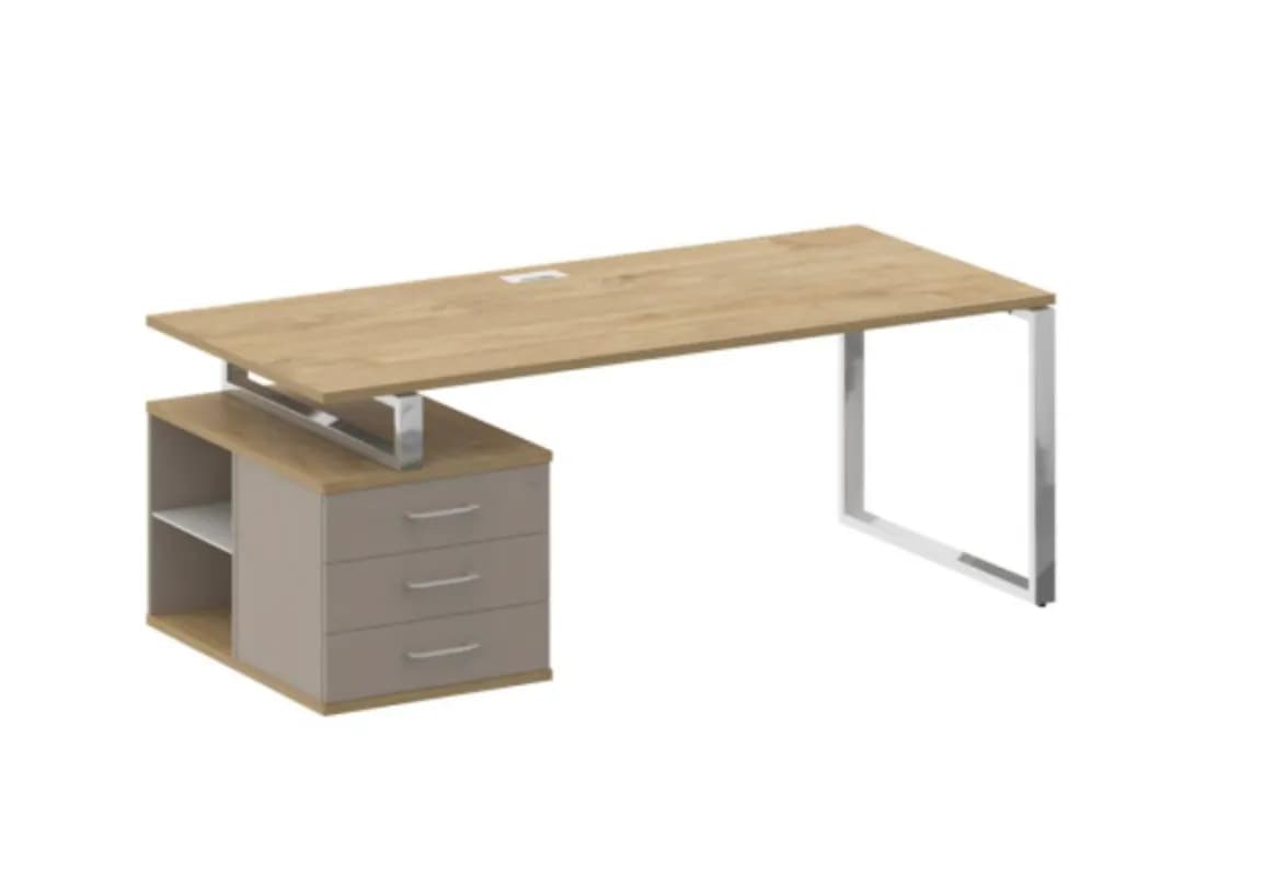 Стол руководителя с опорной тумбой , левый 200 тиквуд светлый/капучино