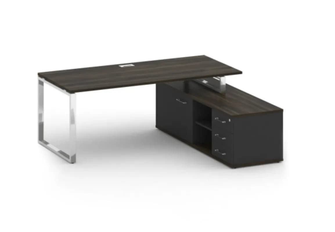 Стол руководителя с опорной греденцией, правый 200 дуб мали/антрацит