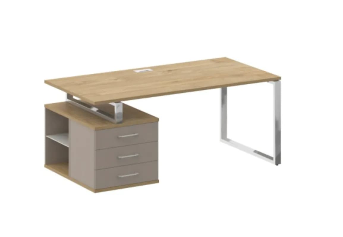 Стол руководителя с опорной тумбой , левый 180 тиквуд светлый/капучино