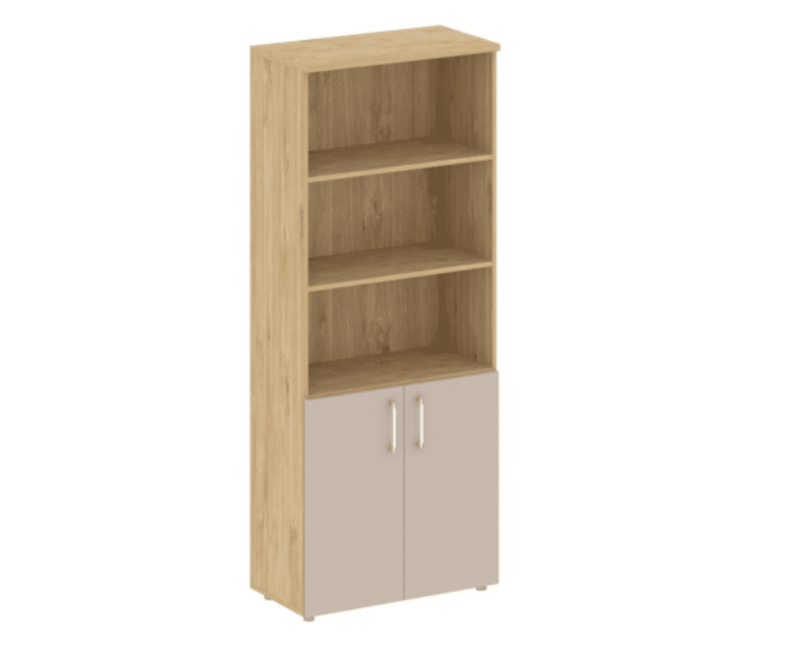 Шкаф высокий широкий (2 низких фасада ЛДСП), тиквуд светлый/капучино