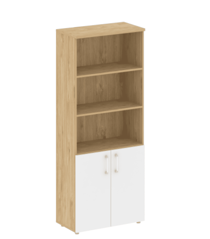 Шкаф высокий широкий (2 низких фасада ЛДСП), тиквуд светлый/белый бриллиант