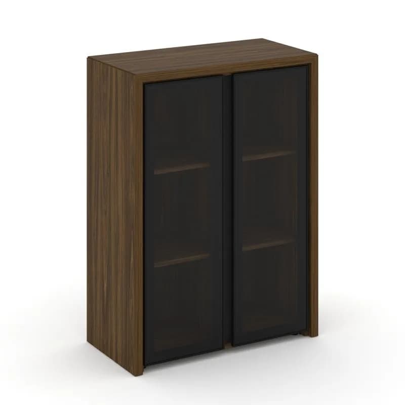 Шкаф средний широкий (2 средних фасада стекло сатин в раме) орех лоренцо/графит
