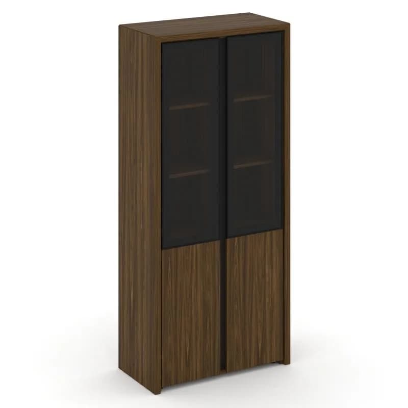 Шкаф высокий широкий (2 низких ЛДСП + 2 средних фасада стекло сатин в раме) орех лоренцо/графит