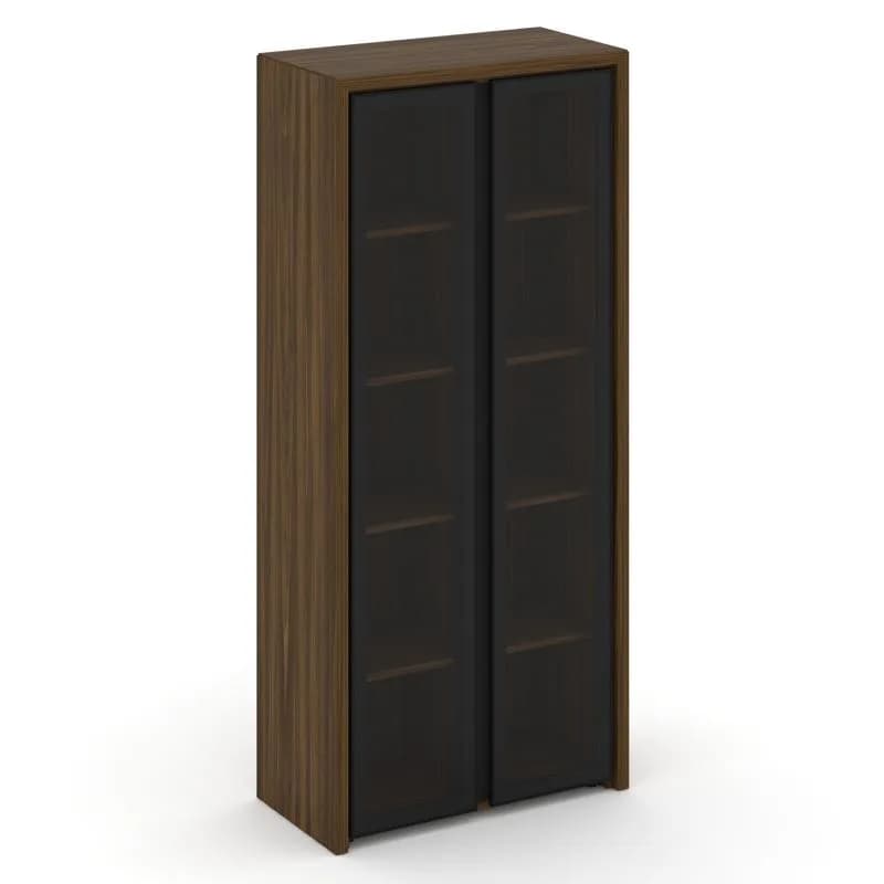Шкаф высокий широкий (2 высоких фасада стекло сатин в раме) орех лоренцо/графит
