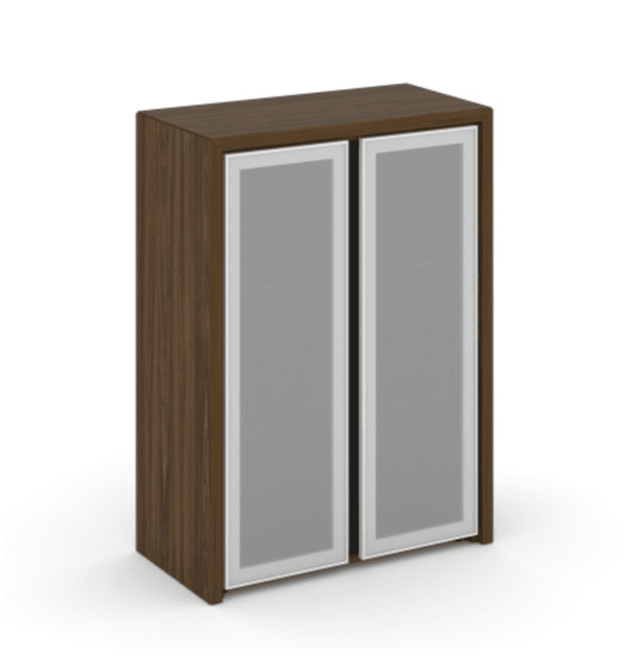 Шкаф средний широкий (2 средних фасада стекло сатин в раме), орех лоренцо/графит