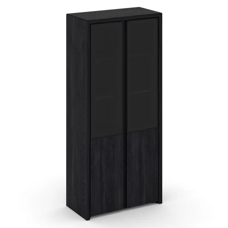 Шкаф высокий широкий (2 низких ЛДСП + 2 средних фасада стекло сатин в раме) каштан тоскана