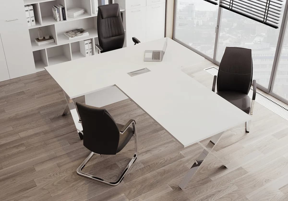 Стол руководителя (МДФ+пластик Феникс, опоры нерж.сталь) 1800