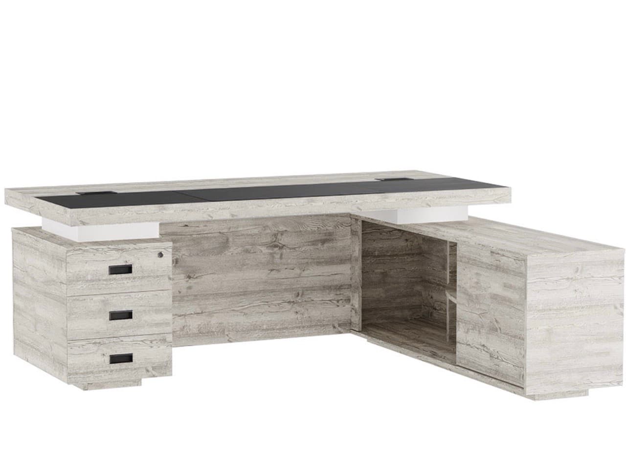 Стол письменный с тумбой и приставкой универсальный, дуб нордик
