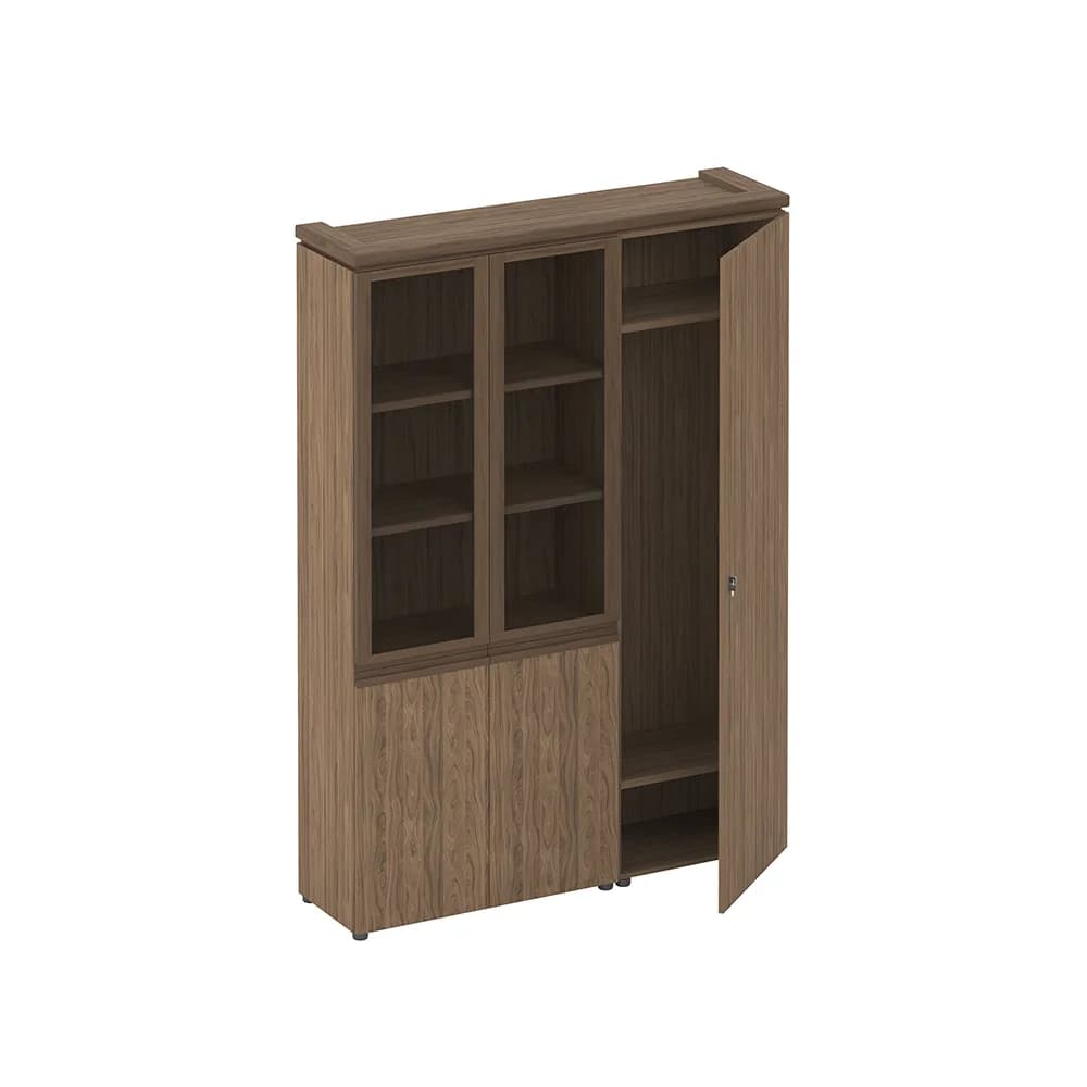Шкаф комбинированный (со стеклом + для одежды узкий) орех новара