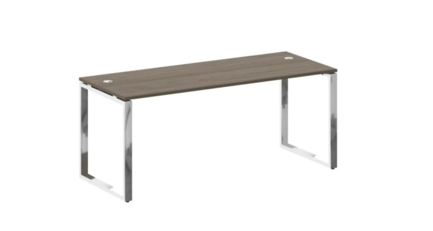 Стол рабочий руководителя на О-обр. м/к нерж.сталь вяз благородный