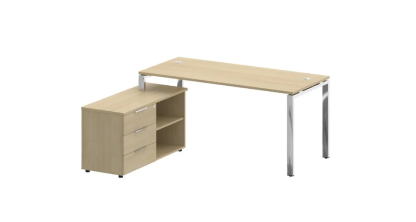 Стол рабочий руководителя с опорной тумбой левый/правый (опоры нерж.сталь) акация лорка