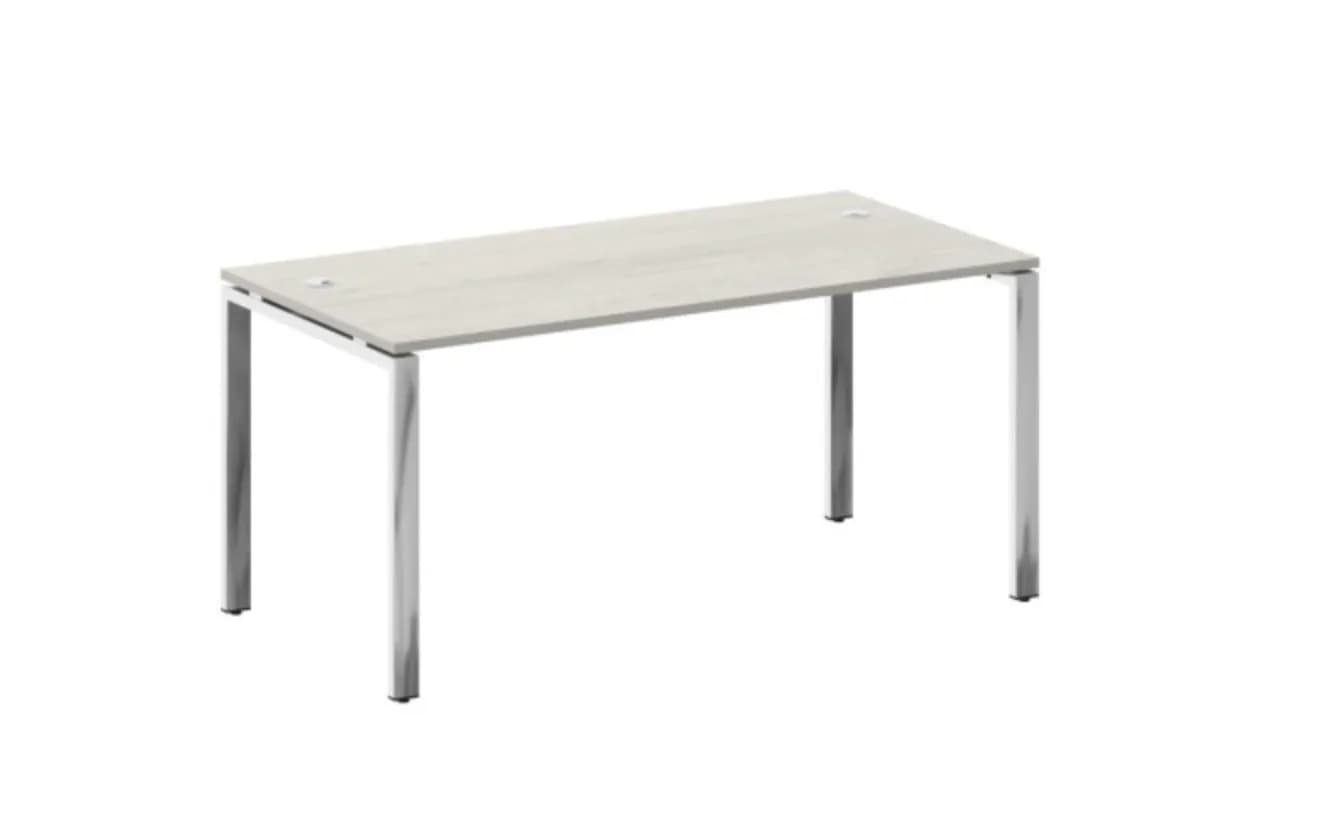 Стол рабочий руководителя на П-обр. м/к нерж.сталь дуб наварра
