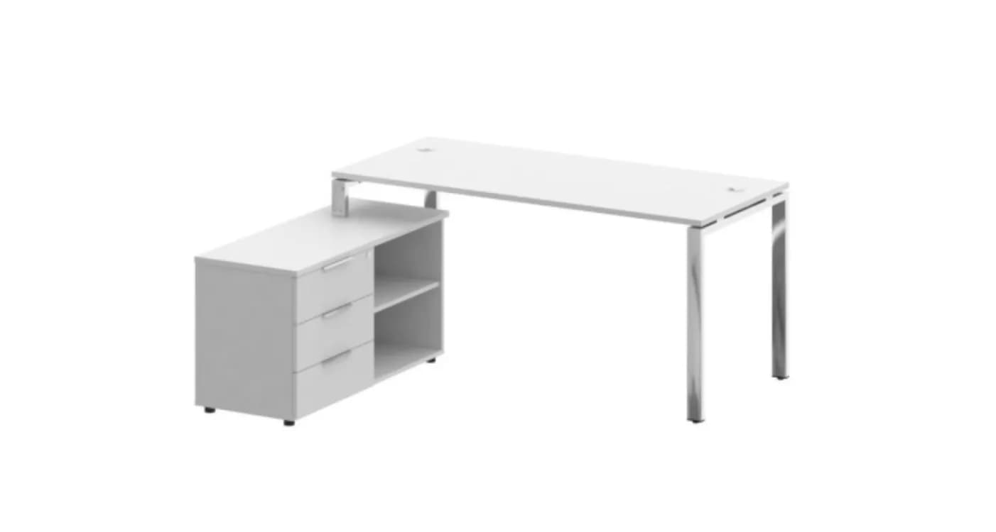 Стол рабочий руководителя с опорной тумбой левый/правый (опоры нерж.сталь) белый