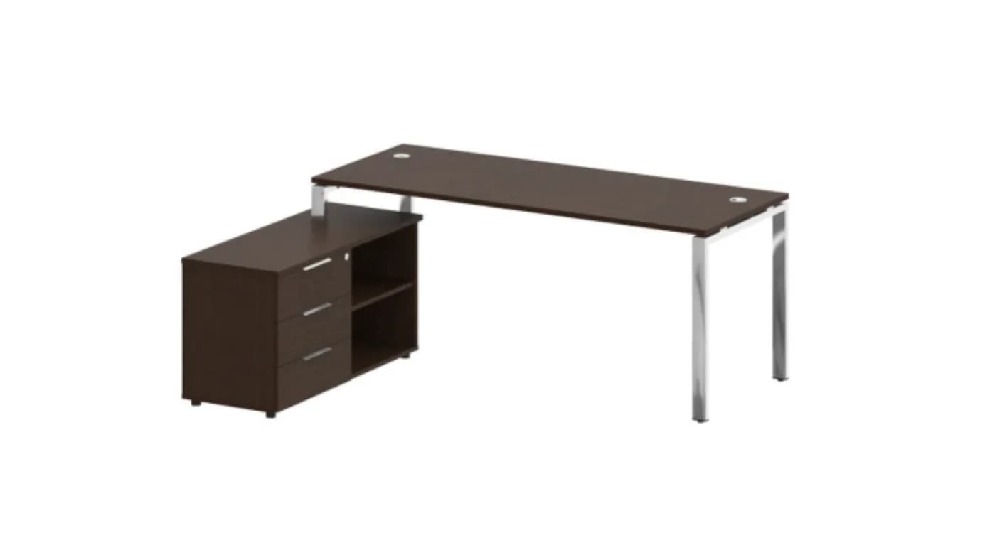 Стол рабочий руководителя с опорной тумбой левый/правый (опоры нерж.сталь) венге цаво