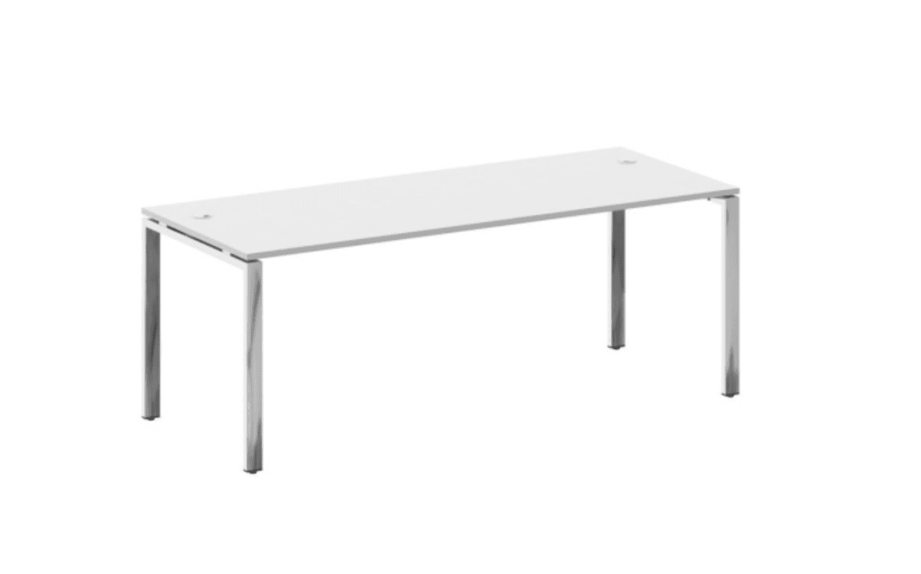 Стол рабочий руководителя на П-обр. м/к нерж.сталь, белый