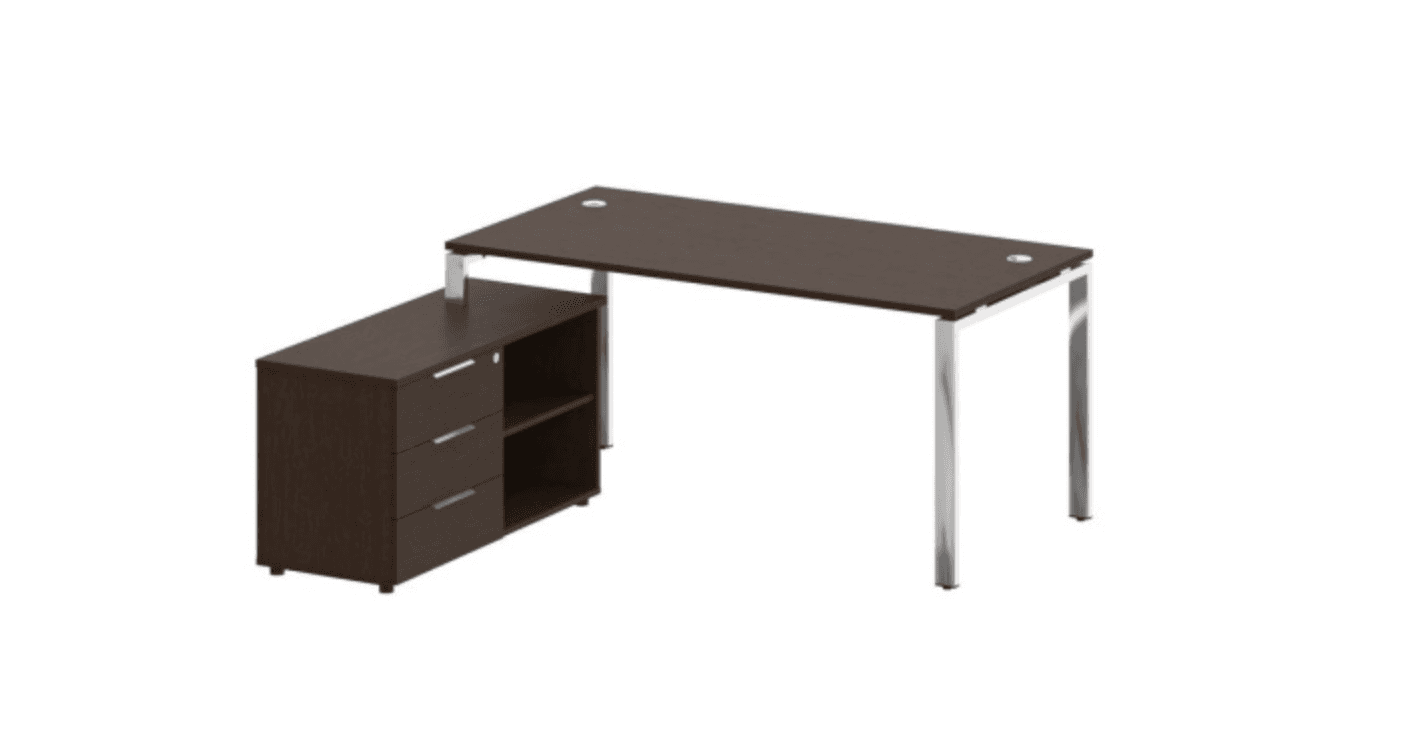 Стол рабочий руководителя с опорной тумбой левый/правый (опоры нерж.сталь), венге цаво