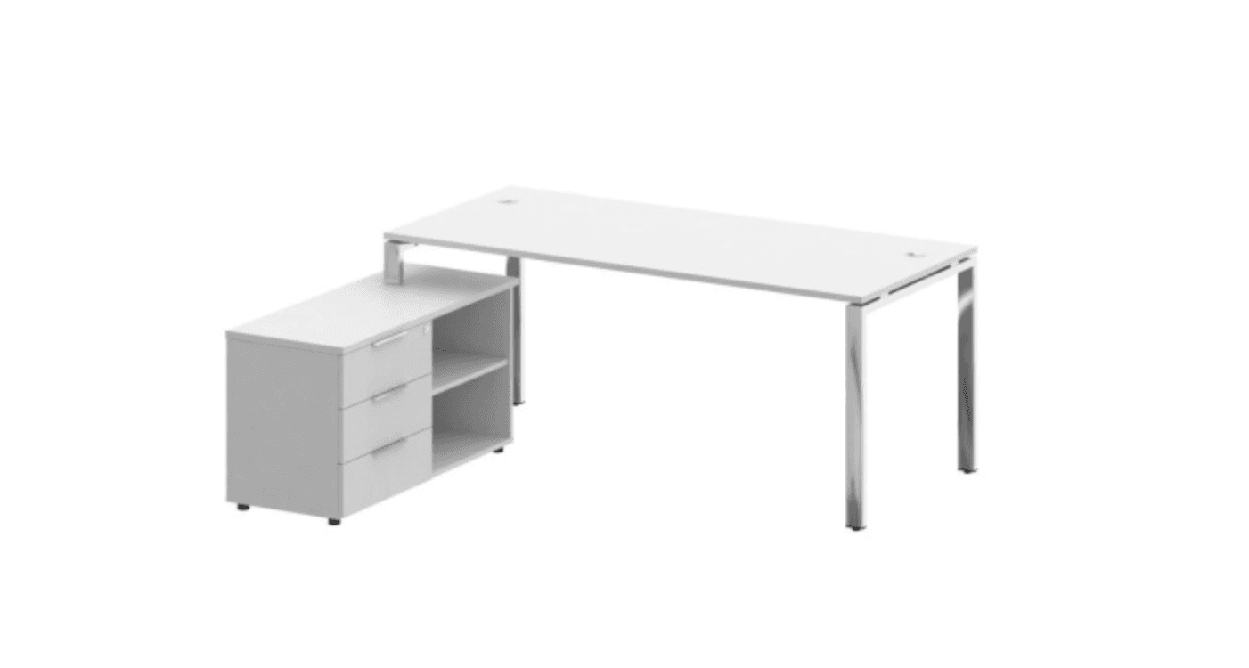 Стол рабочий руководителя с опорной тумбой левый/правый (опоры нерж.сталь), белый