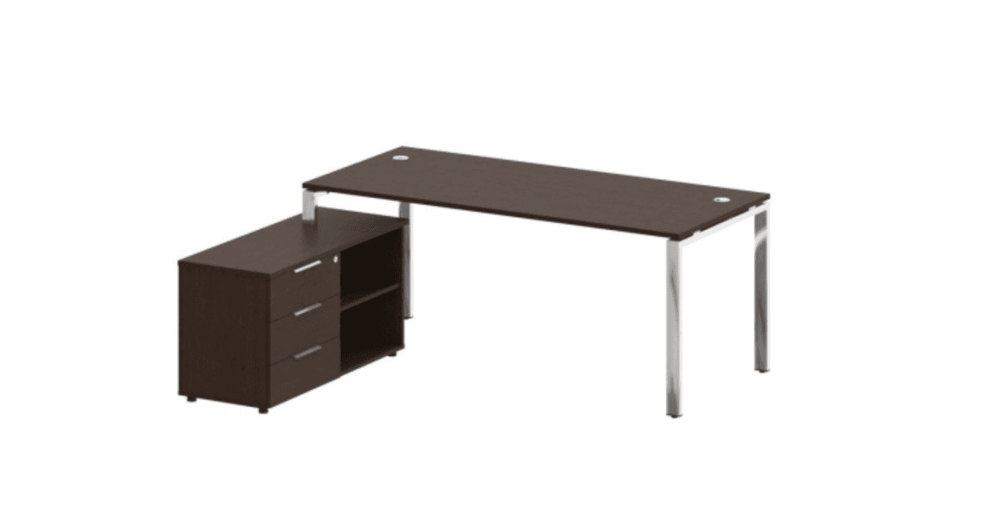 Стол рабочий руководителя с опорной тумбой левый/правый (опоры нерж.сталь), венге цаво
