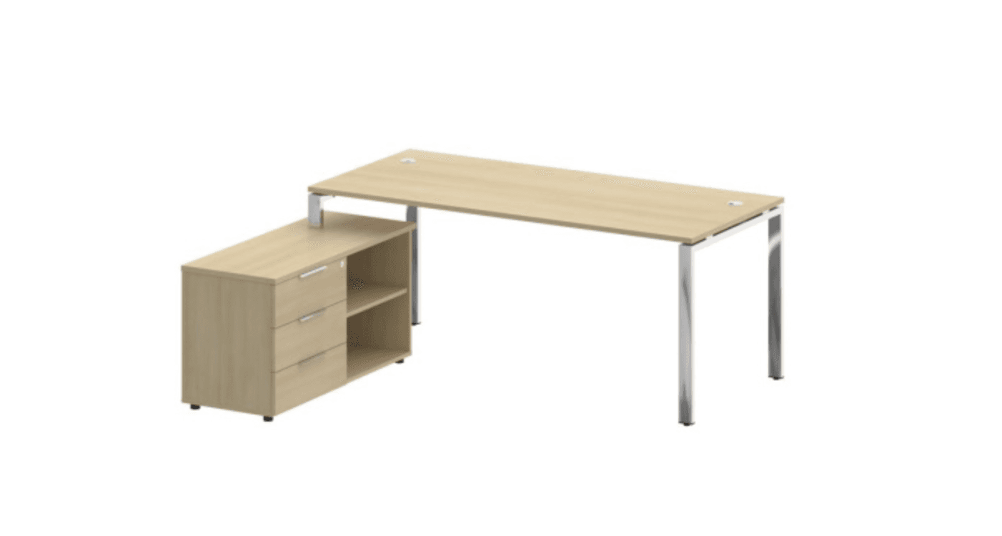 Стол рабочий руководителя с опорной тумбой левый/правый (опоры нерж.сталь), акация лорка
