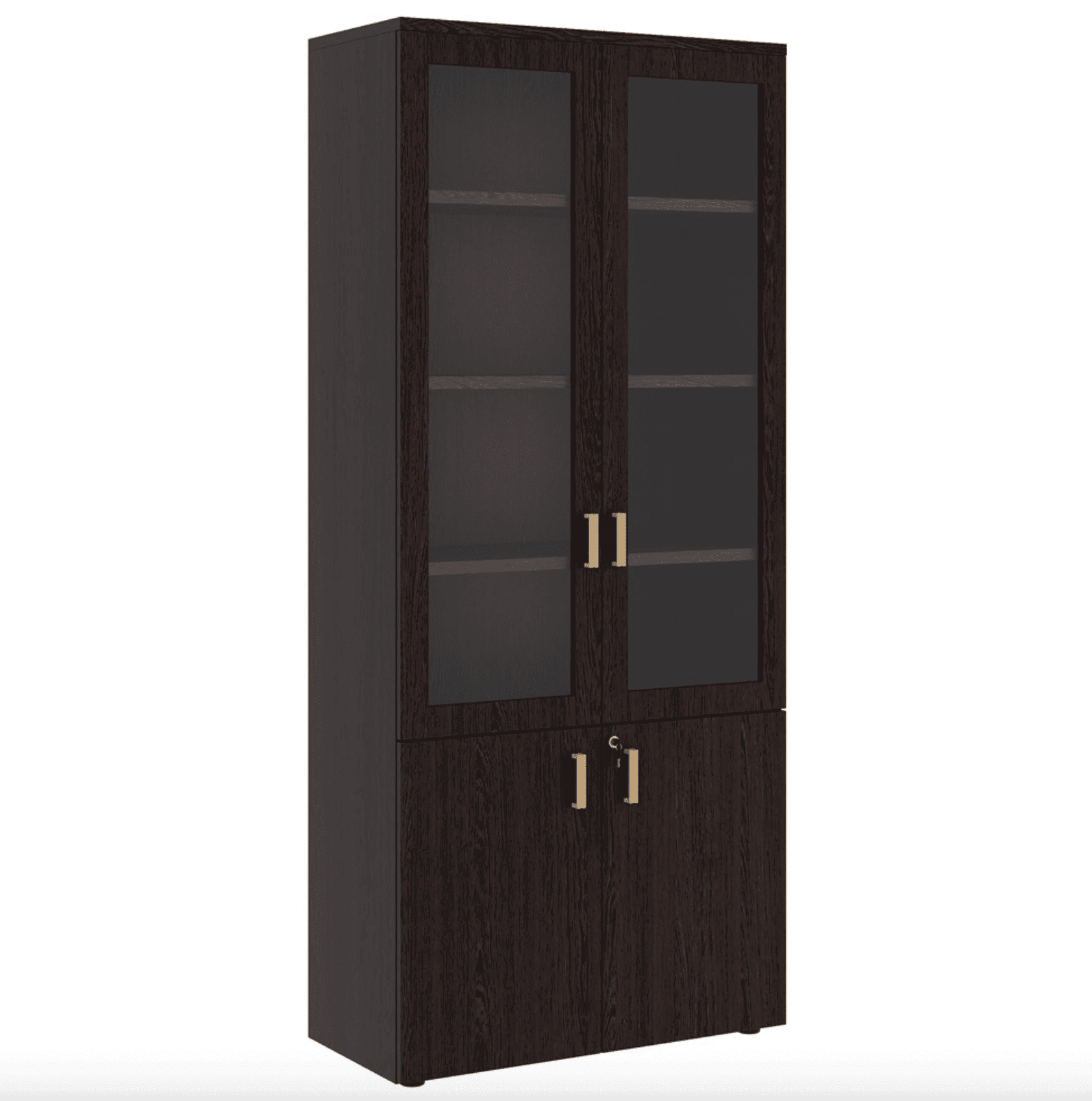 Шкаф для бумаг со стеклом, венге — Кабинет Монза орех бренди — OKMebel24