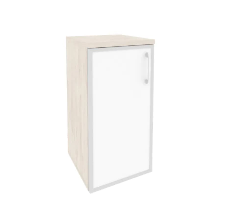 Шкаф низкий узкий левый (1 низкий фасад стекло лакобель в раме) денвер светлый