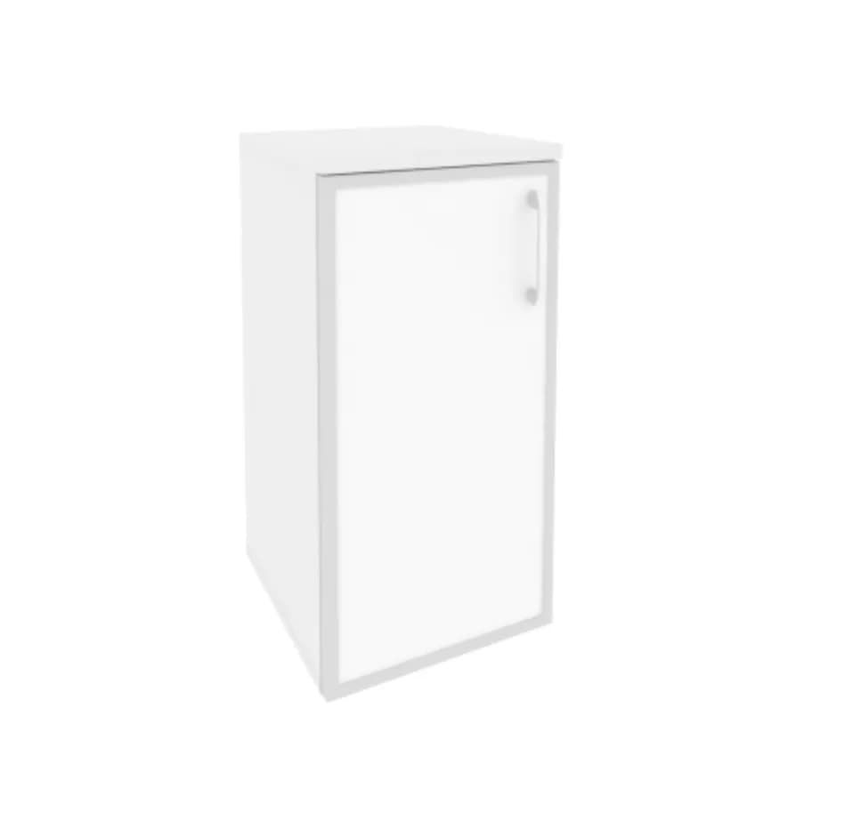Шкаф низкий узкий левый (1 низкий фасад стекло лакобель в раме) белый бриллиант
