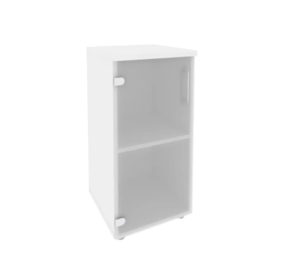 Шкаф низкий узкий левый (1 низкий фасад стекло) белый бриллиант
