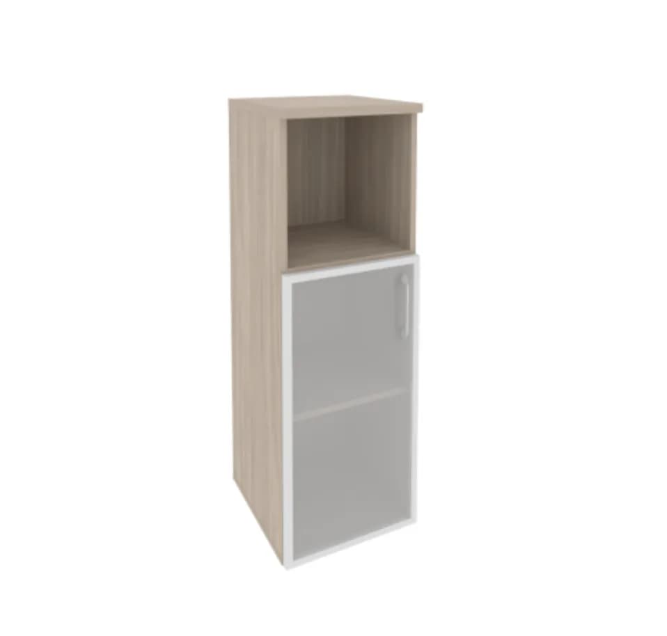Шкаф средний узкий левый (1 низкий фасад стекло в раме) дуб аттик