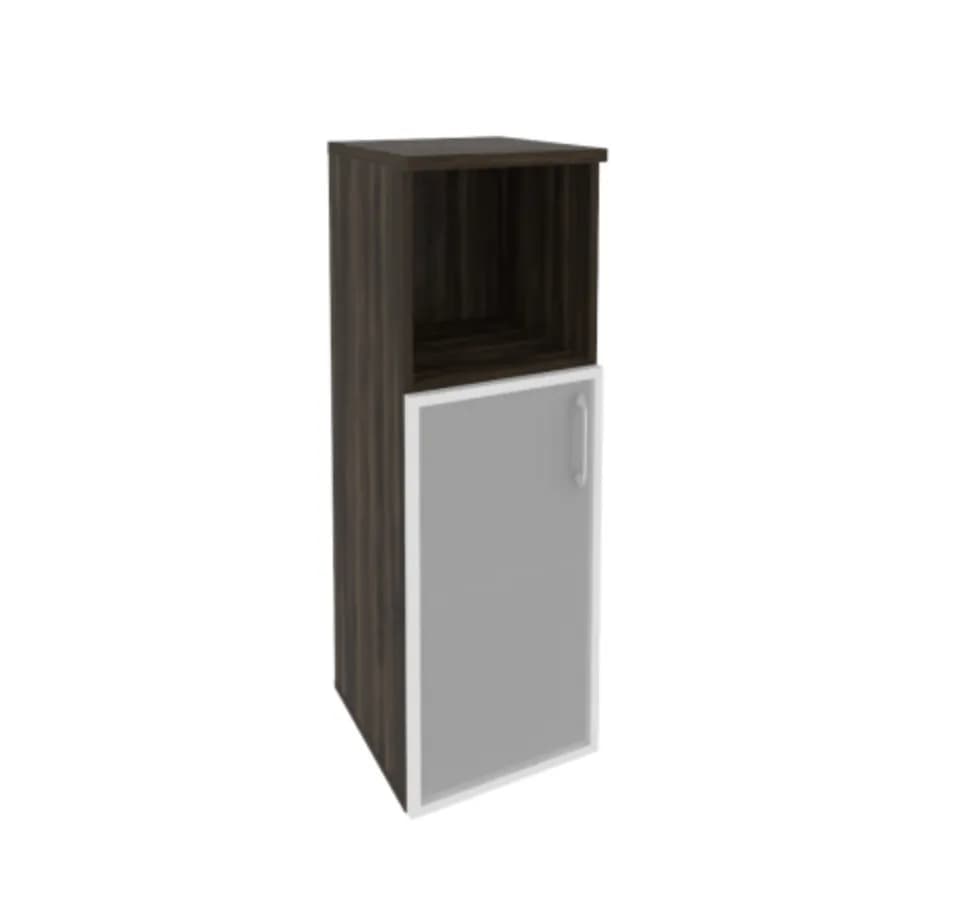 Шкаф средний узкий левый (1 низкий фасад стекло в раме) дуб мали