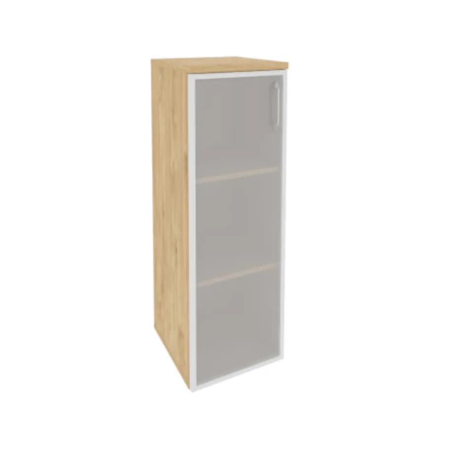 Шкаф средний узкий левый (1 средний фасад стекло в раме) тиквуд светлый