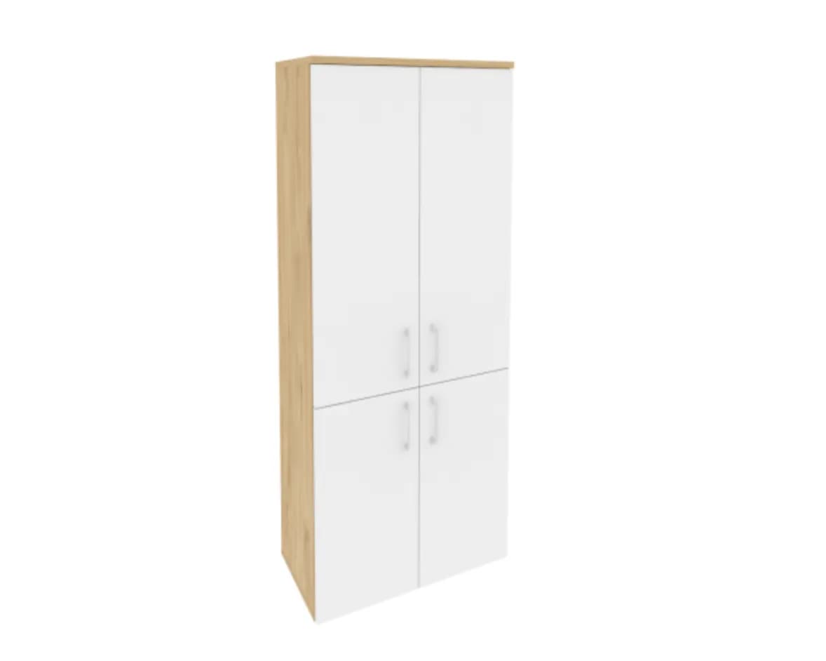 Шкаф высокий широкий (2 низких фасада ЛДСП + 2 средних фасада ЛДСП) фасад белый бриллиант тиквуд светлый