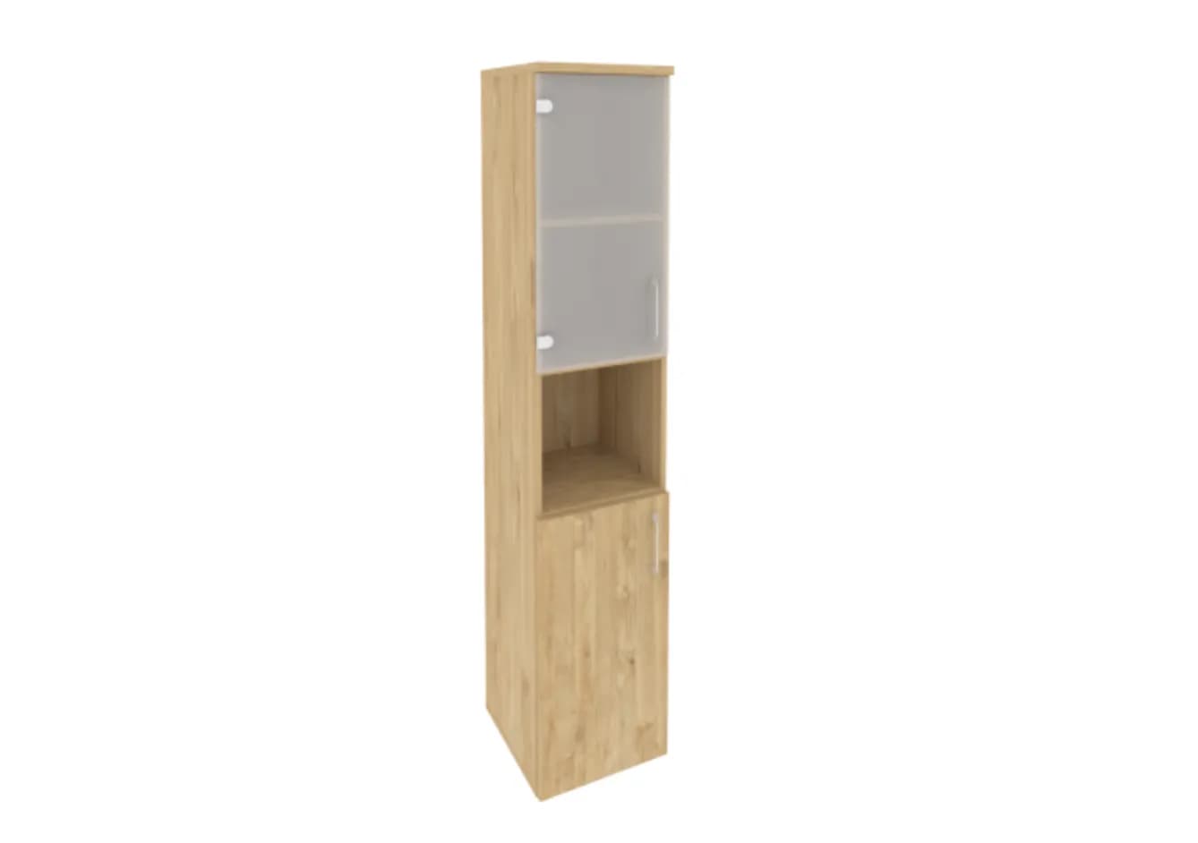 Шкаф высокий узкий левый/правый (1 низкий фасад ЛДСП + 1 низкий фасад стекло) тиквуд светлый