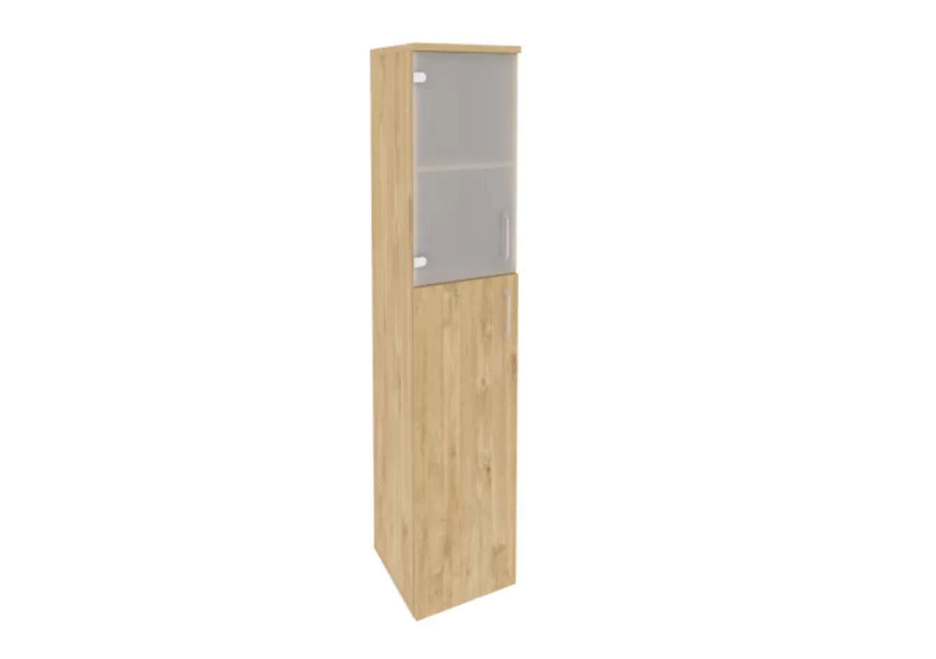Шкаф высокий узкий левый/правый (1 средний фасад ЛДСП + 1 низкий фасад стекло) тиквуд светлый